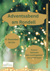 Adventsabend am Rondell mit gemeinsamen Singen unter dem Weihnachtsbaum, Weihnachtsgebäck, Punsch und Glühwein. Gäste sind herzlich willkommen! In Auftrag des […]