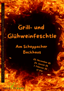 An unseren Feuertonnen genießen wir ab 17 Uhr am Scheppacher Backhaus Wurscht im Weck, Glühwein und Punsch in geselliger Runde. […]